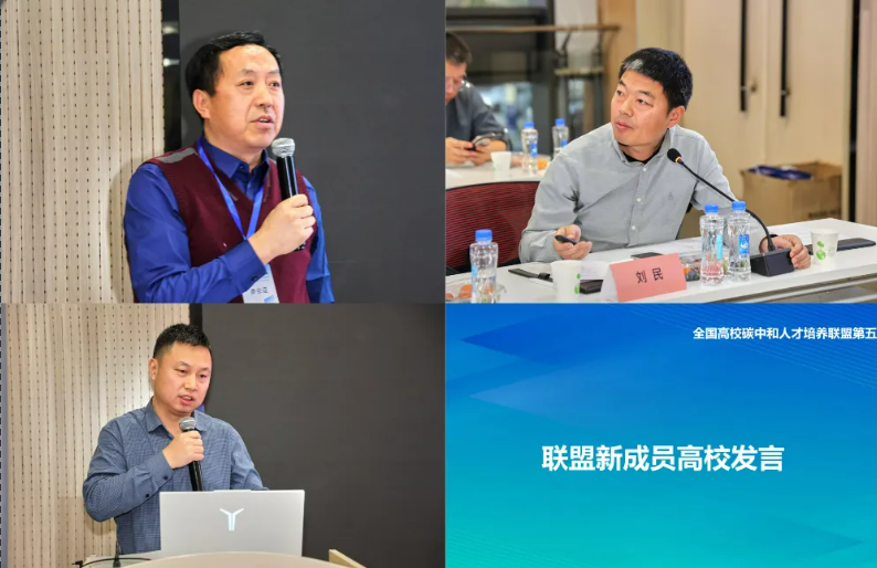 联盟新成员高校代表发言环节,北京大学碳中和研究院、华东理工大学、昆明理工大学、汕头大学、内蒙古师范大学、新疆大学、新疆师范大学等七所新加入联盟的高校依次介绍了本校在碳中和相关学科建设、科学研究及社会服务领域的基础与规划,明确表达了积极参与联盟工作的意愿。